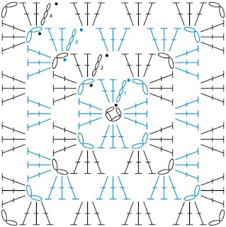 On s'arme de patience et on crochète les grannys selon ce graphique. Nous devons entrer les fils avant de les joindre ensemble.