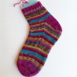 Il y a un peu plus d'un an, je découvrais les chaussettes tricotées par Céline Chénard de Rimouski. J'étais à la boutique La vie laine et il y avait une dame qui avait de fabuleuses chaussettes dans les mains. Elles étaient parfaites (sans mes petits défauts). Elle m'a expliqué que ses chaussettes étaient tricotées avec des aiguilles circulaires et qu'elle serait heureuse de me donner un cours. J'ai donc appris cette méthode qui me facilite grandement la tâche. Inutile de vous dire que j'en ai fait plusieurs paires.